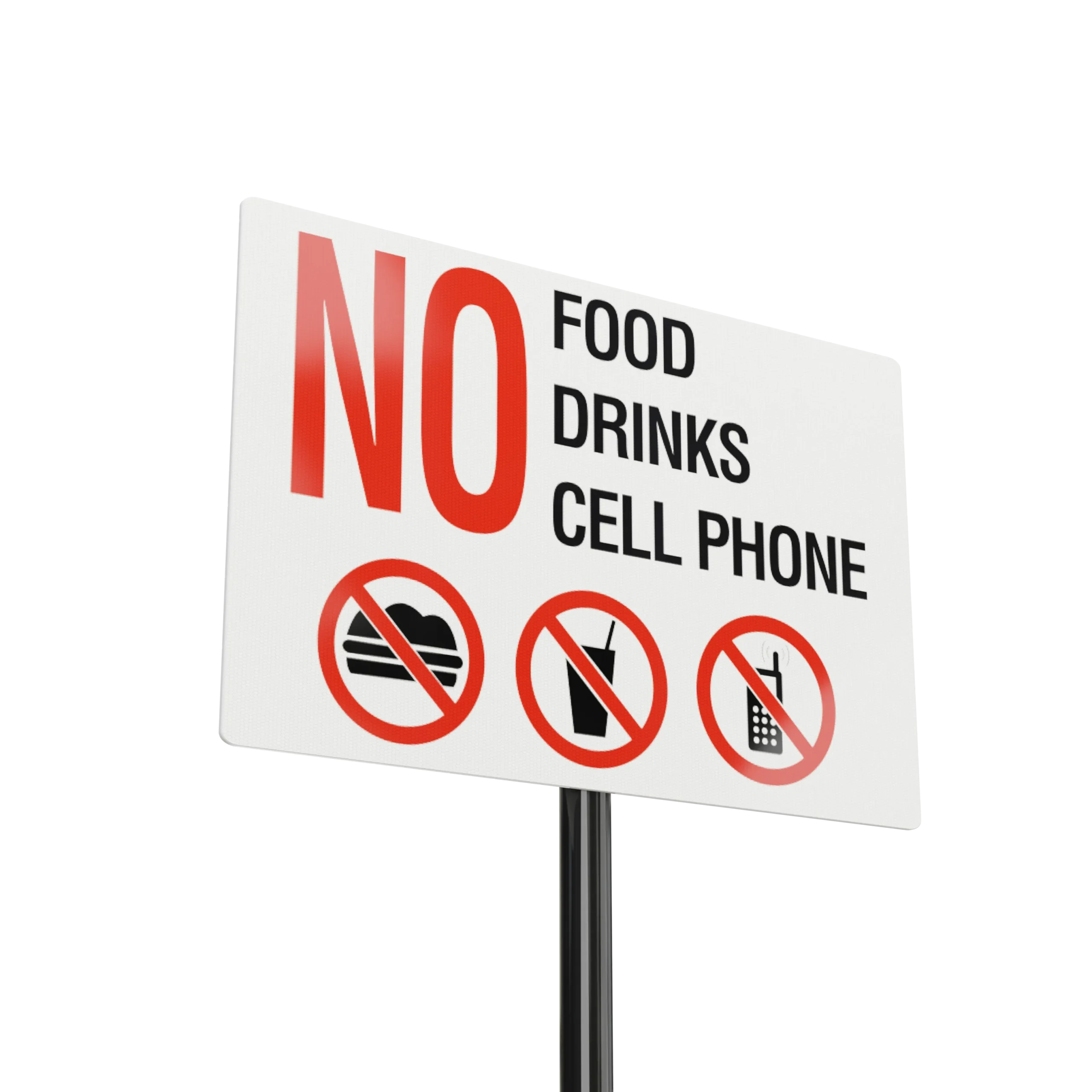 No Food, Drinks, Cell Phone.